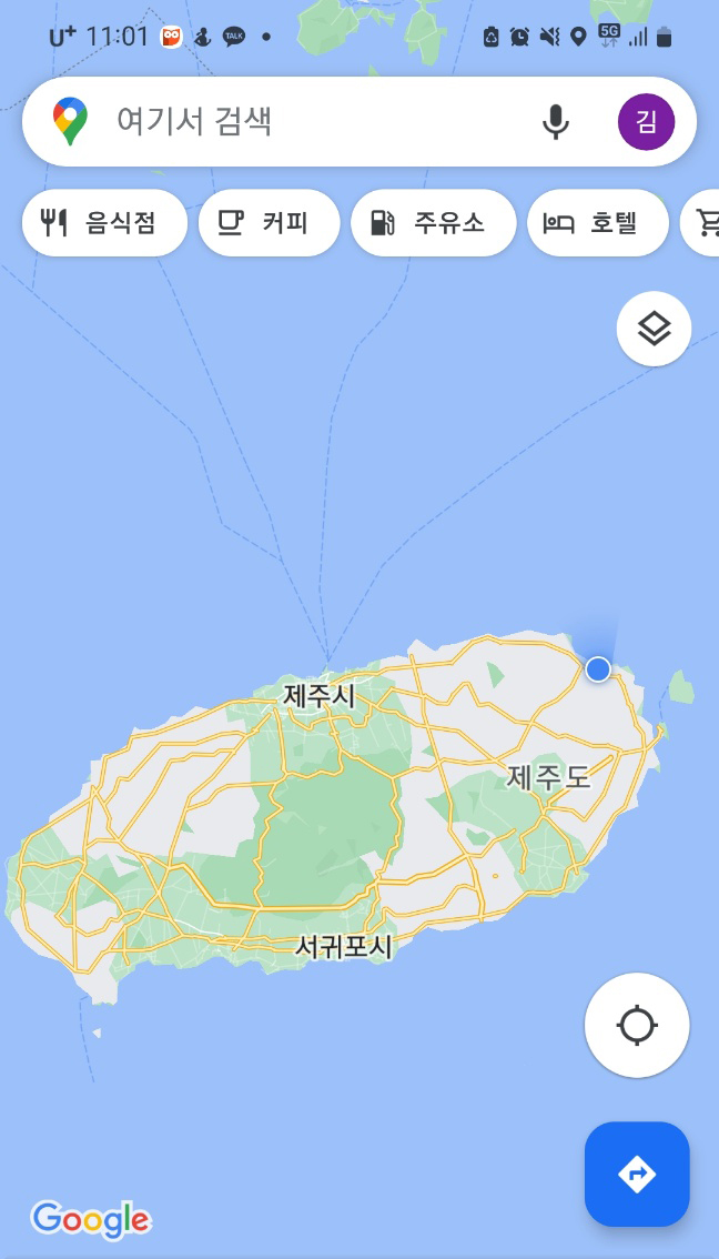 두번째 날 오전 10시 44분, 서귀포시 근방.