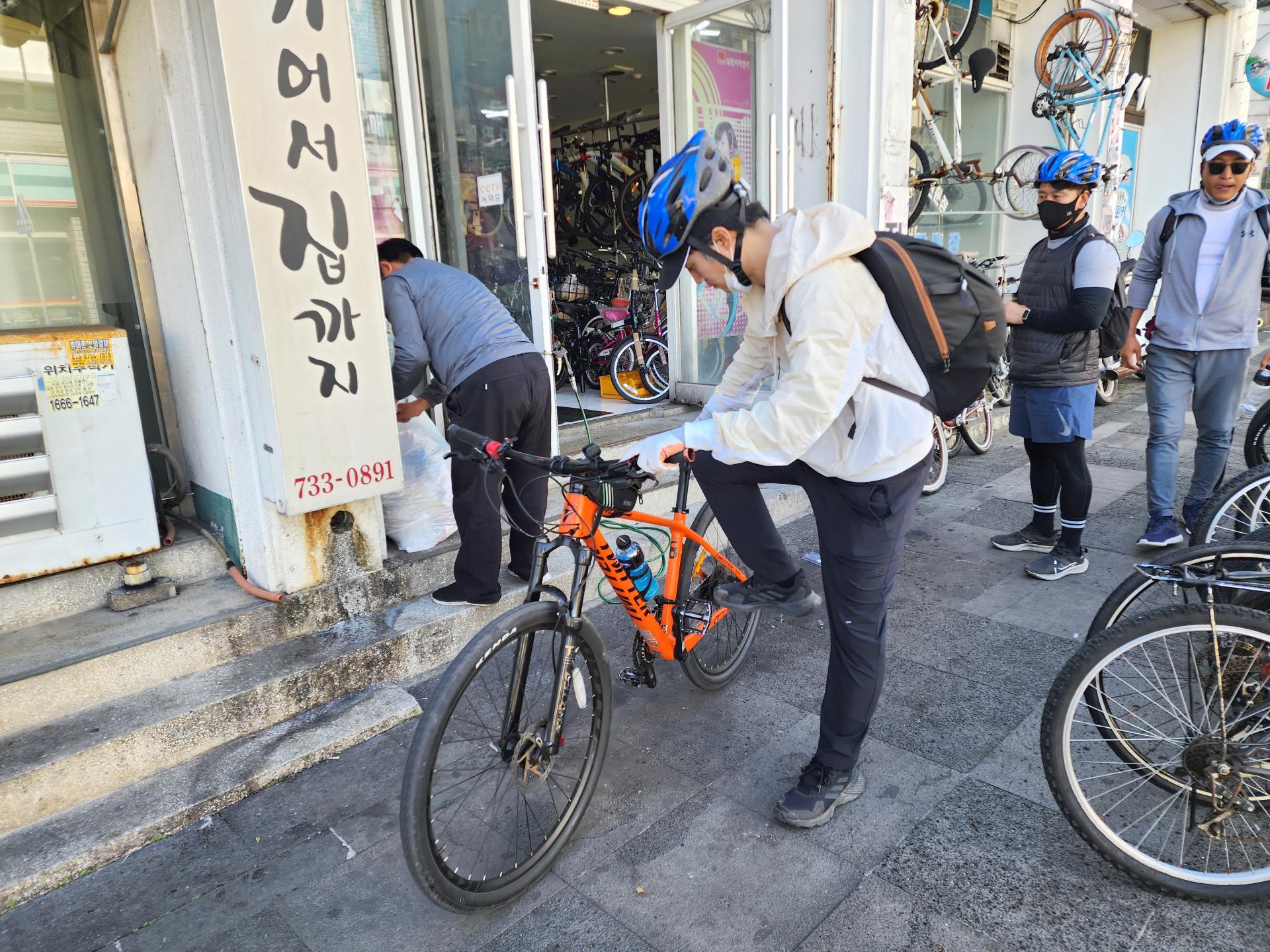 자전거 전문가가 팀원들 자전거 상태 일일이 체크하는 중...이라고 치죠.